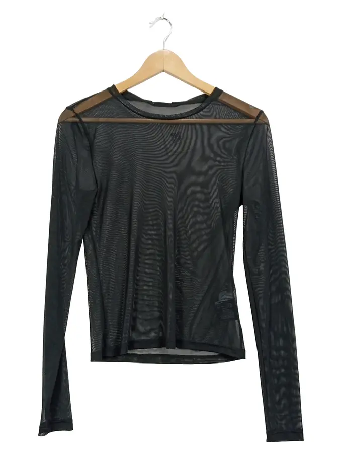 Damen Langarmshirt Netz Mesh transparent schwarz Gr. S
