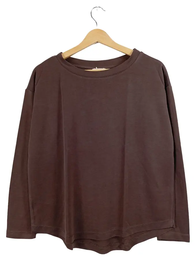 Damen Langarmshirt Pullover Braun Gr. M Basic Baumwolle