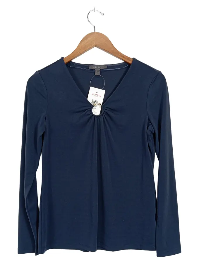 Damen Langarmshirt Ring-Detail Gr. 36/S Blau Casual Bluse
