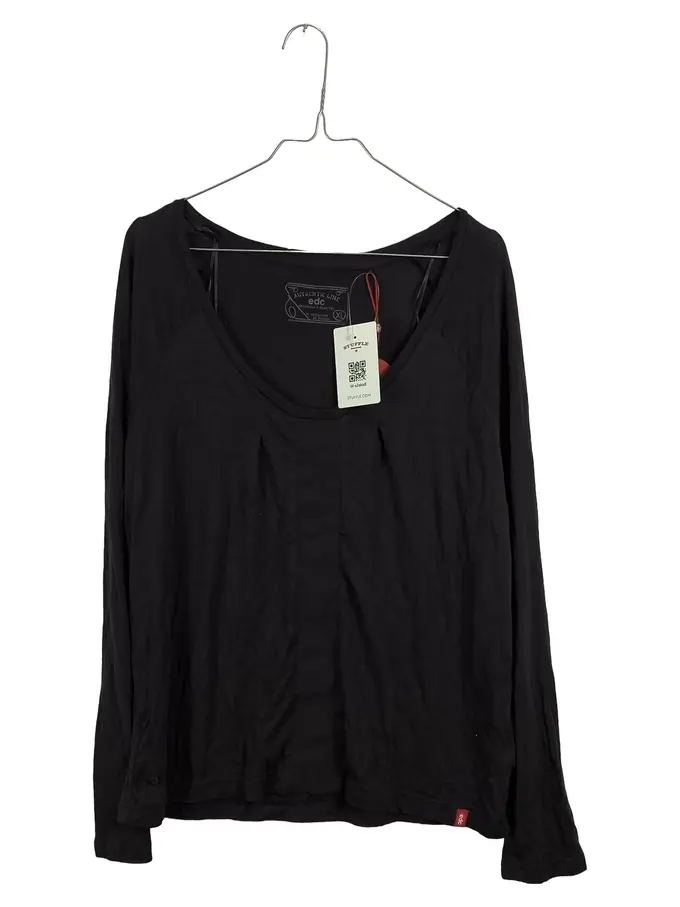 Damen Langarmshirt Schwarz Gr. L/XL Basic Rundhals