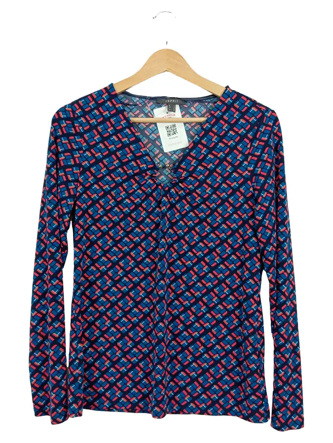 Damen Langarmshirt V-Ausschnitt Muster Gr. 36/S Mehrfarbig Modern