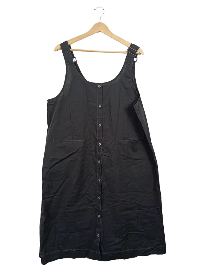Damen Latzkleid Gr. 40/L Schwarz Baumwolle Leinen
