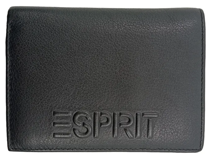 Damen Leder Geldbörse Schwarz Portemonnaie Wallet Logo Print