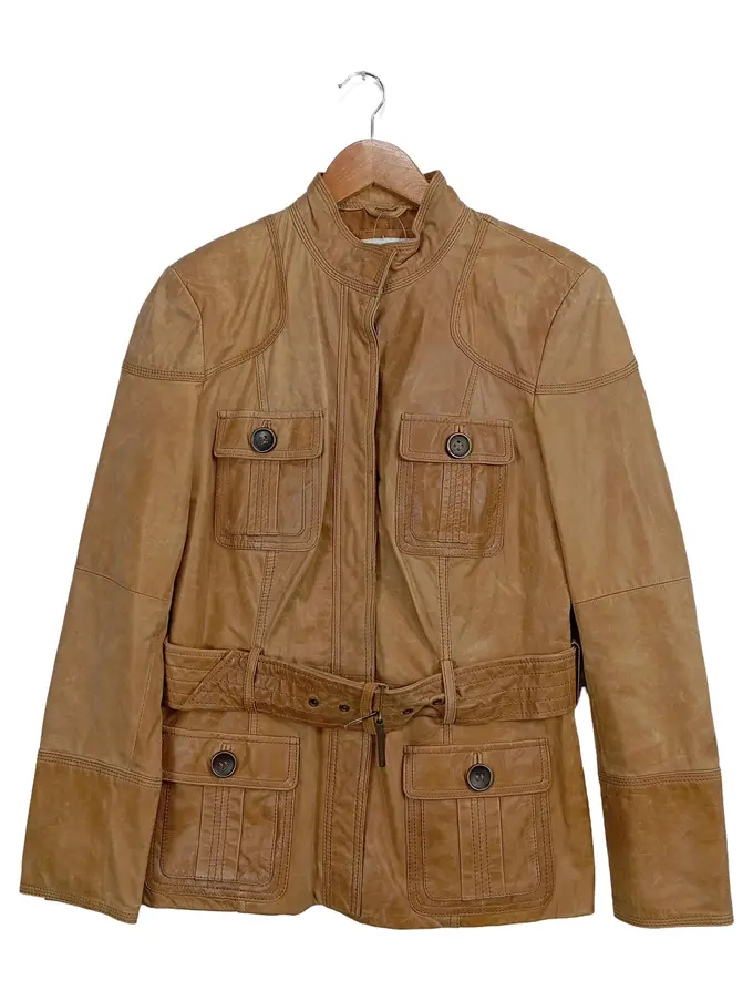 Damen Lederjacke Braun XL Casual Modern mit Gürtel