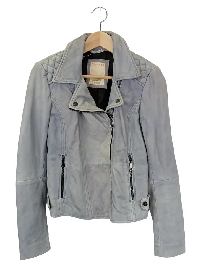 Damen Lederjacke Gr. 36/S Grau Casual Biker-Stil Reißverschluss