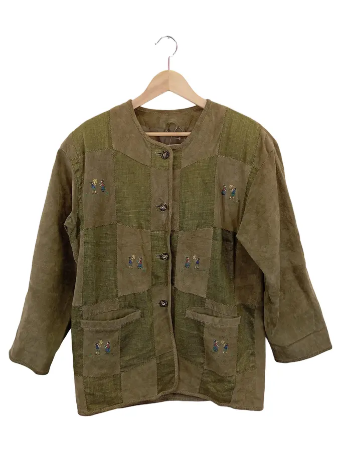Damen Lederjacke Gr. 36;S Grün Vintage Bohemian Ethno