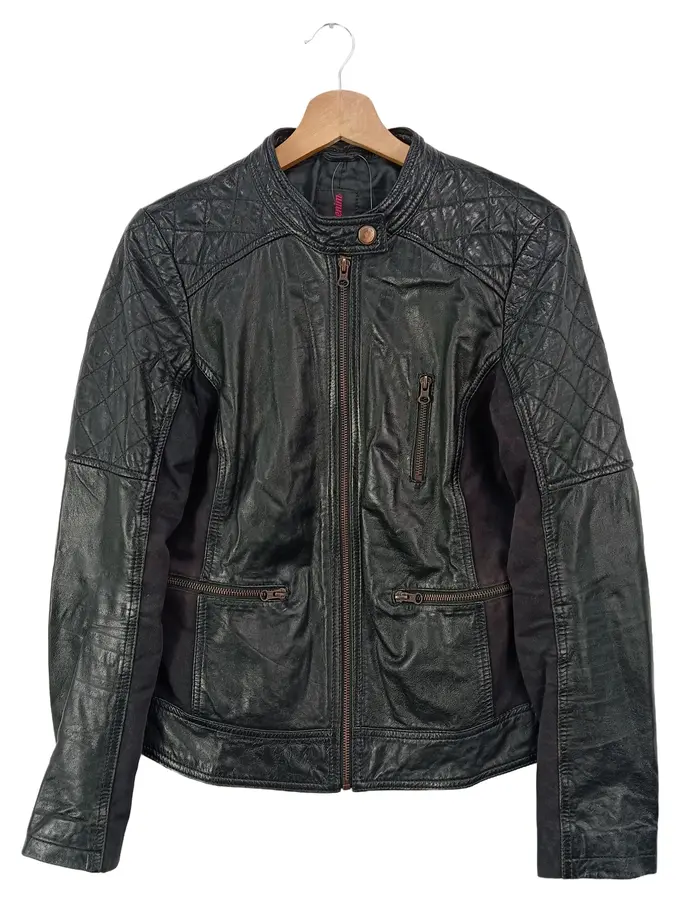Damen Lederjacke Schwarz Gr. 38/M Vintage Streetwear