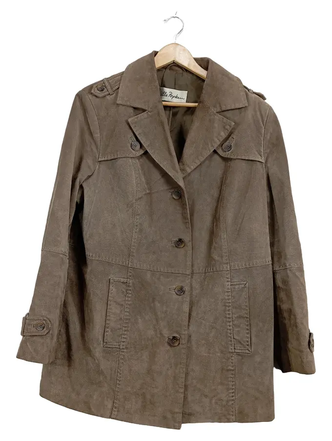 Damen Ledermantel Braun Gr. 44 Veloursleder Klassisch