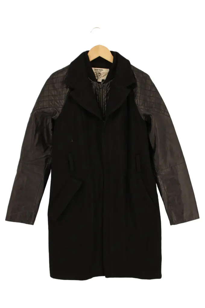 Damen Ledermantel Gr. 38;M Schwarz Baumwolle Leder Gesteppt