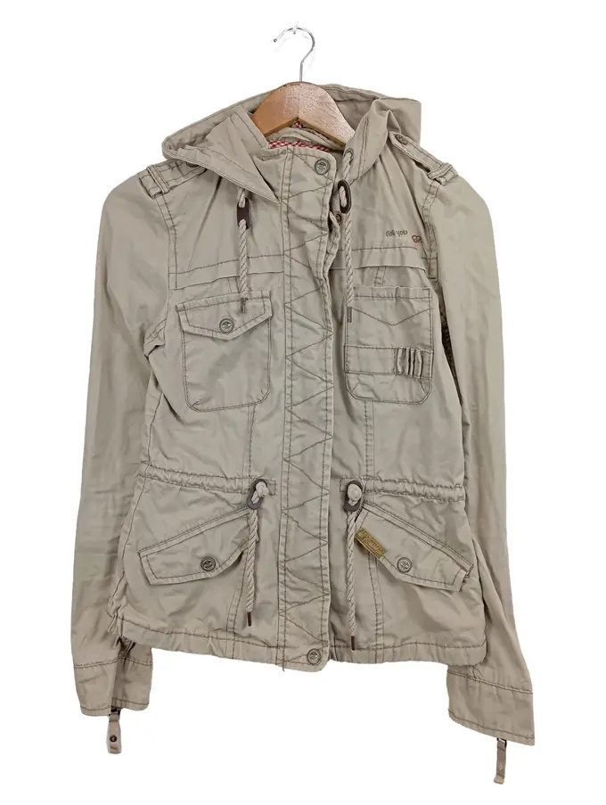 Damen Leichte Jacke Beige Gr. 34/XS Baumwolle Casual Kapuze