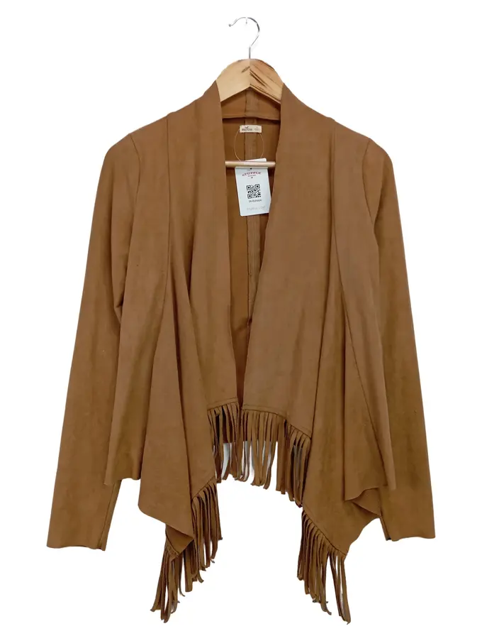 Damen Leichte Jacke Fransen Bohemian Braun Gr. 34/XS