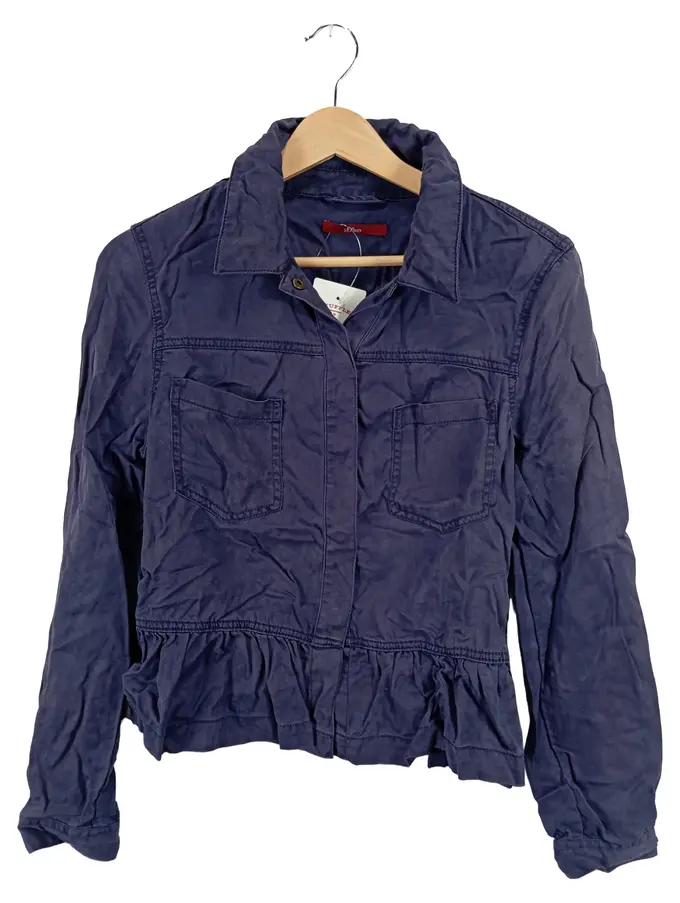 Damen Leichte Jacke Gr. 38 Blau Lyocell Rüschen Casual