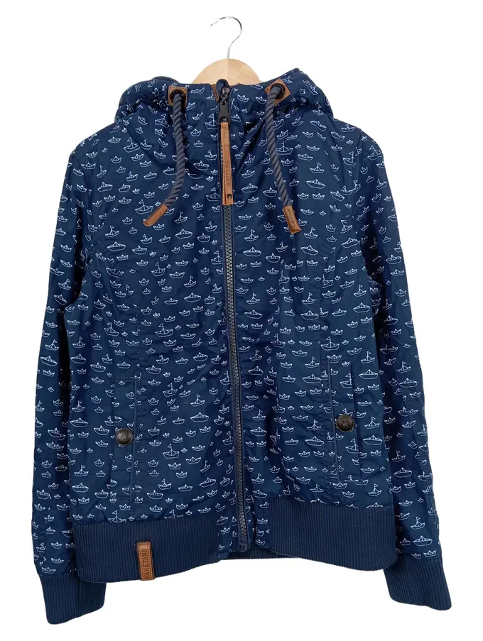 Damen Leichte Jacke Kapuze Maritim Muster Blau Gr. 40/L