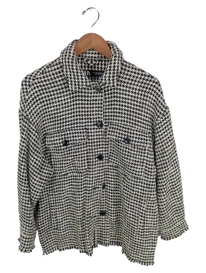 Damen Leichte Jacke kariert Fransen Knopfleiste Mehrfarbig 36/S