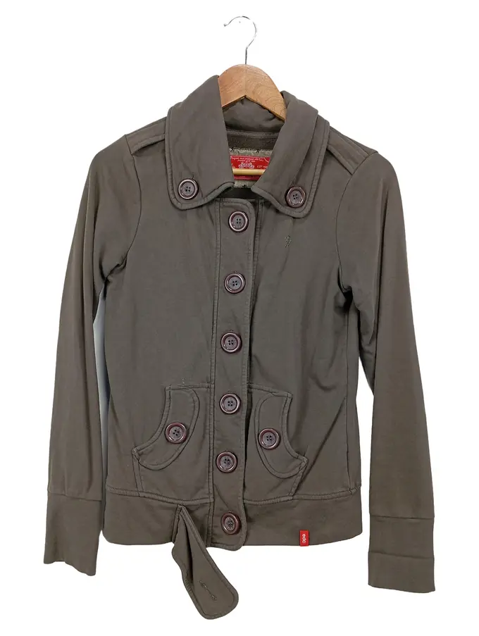 Damen Leichte Jacke Oliv Gr. M Baumwolle Knopfleiste