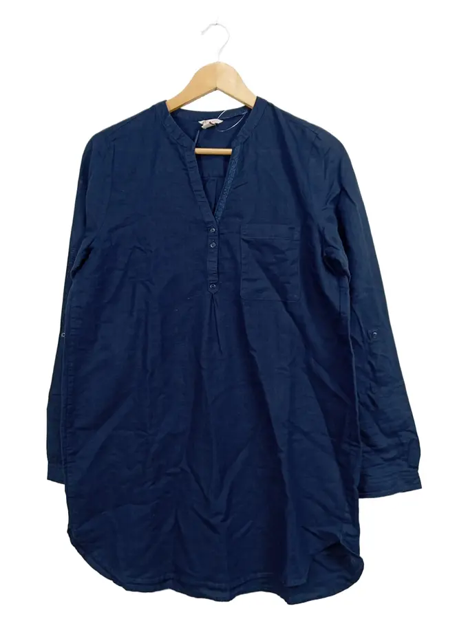 Damen Leinen Langarmshirt Bluse Knopfleiste Blau Gr. 38 M