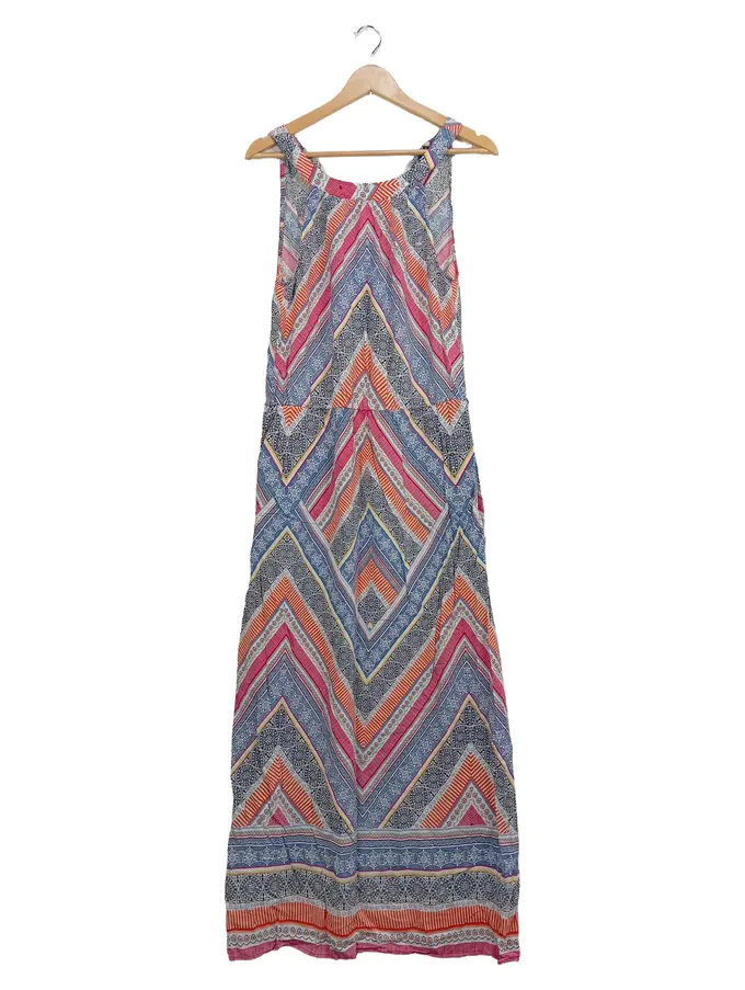 Damen Maxikleid Gr. 38 Mehrfarbig Ethno Viskose Sommerkleid