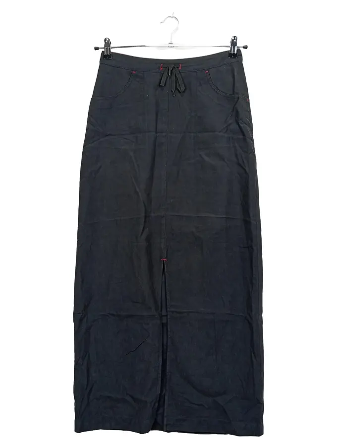 Damen Maxirock Gr. 36 Schwarz Schlitz Knöchellang