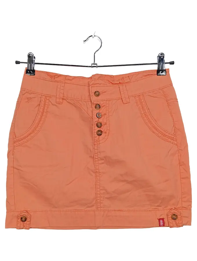 Damen Minirock Gr. 32 Orange Baumwolle Knopfleiste