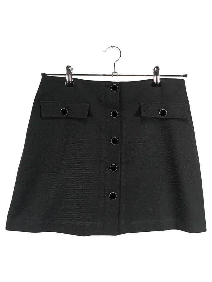 Damen Minirock Gr. 38 Schwarz Knopfleiste A-Linie