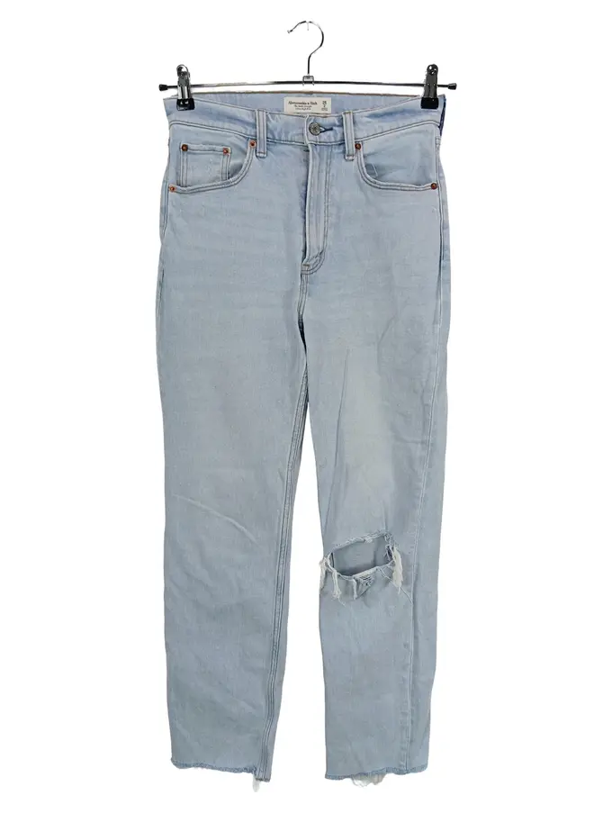 Damen Mom Jeans Gr. 26 Hellblau Casual Distressed