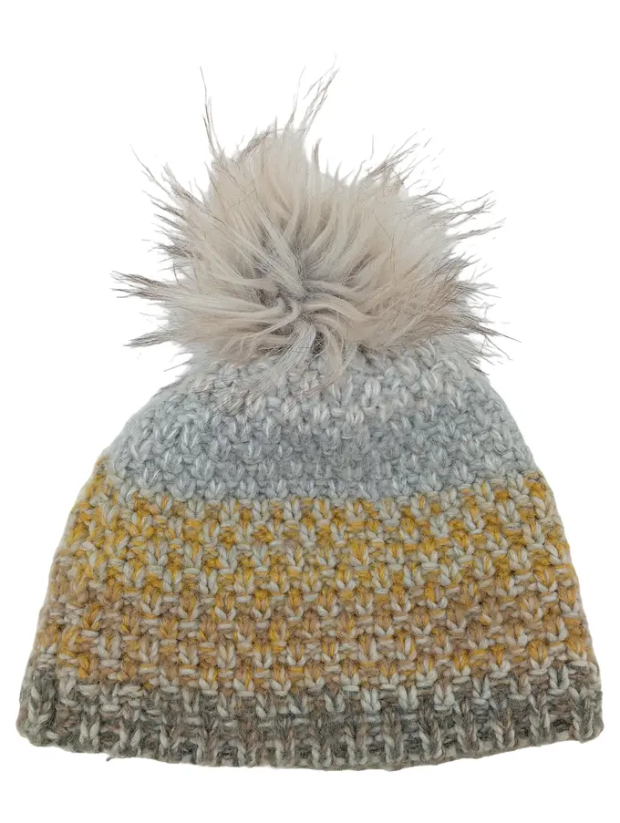 Damen Mütze Mehrfarbig Strickmütze mit Fellbommel Casual One Size