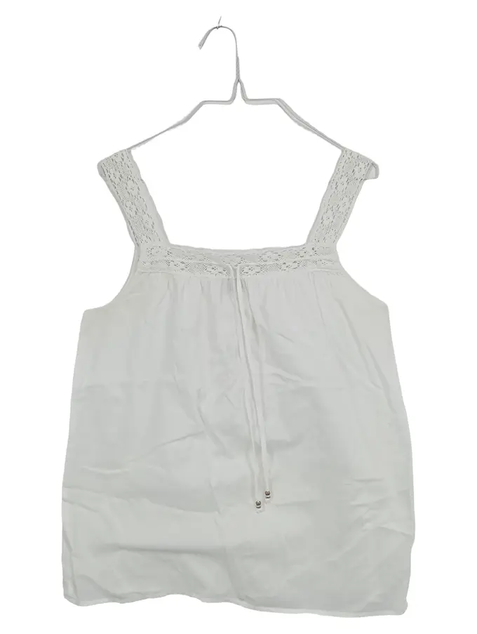 Damen Nachthemd Gr. 40 Weiß Spitze Baumwolle Ärmellos Freizeit