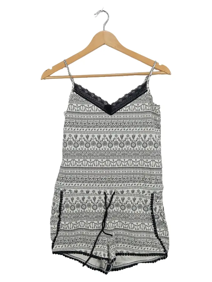 Damen Nachthemd Playsuit Ethno Spitze Gr. 38;M Weiß