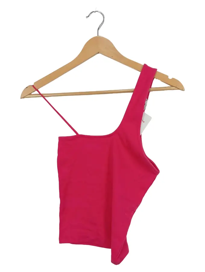 Damen One-Shoulder Top Pink Modisch Einheitsgröße