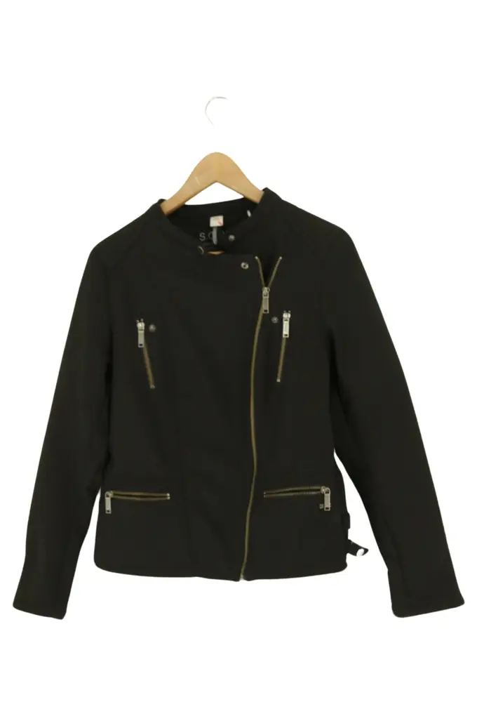 Damen Outdoorjacke Bikerjacke Gr. 36/S Schwarz Modisch Elegant