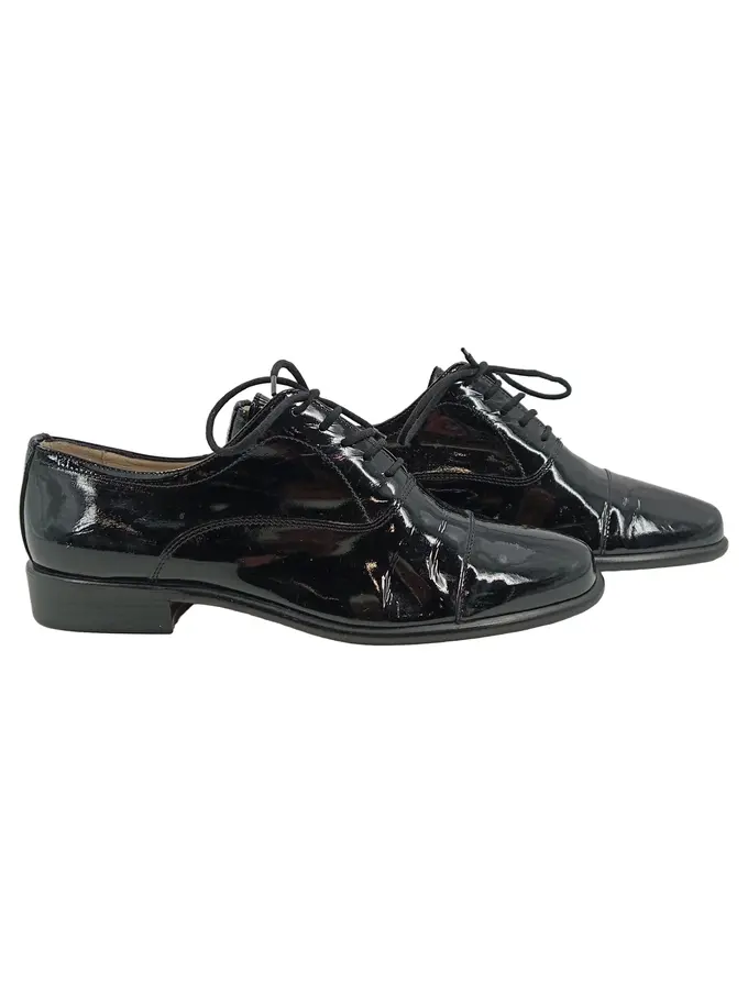 Damen Oxford Schnürschuhe Lackleder Schwarz Gr. 37,5 Elegant