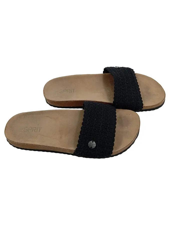Damen Pantoletten Slides Häkelriemen Schwarz Gr. 41 Sommer