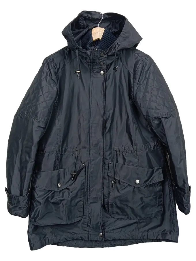 Damen Parka Gr. 38/M Schwarz Klassisch Outdoor Steppjacke mit Kapuze