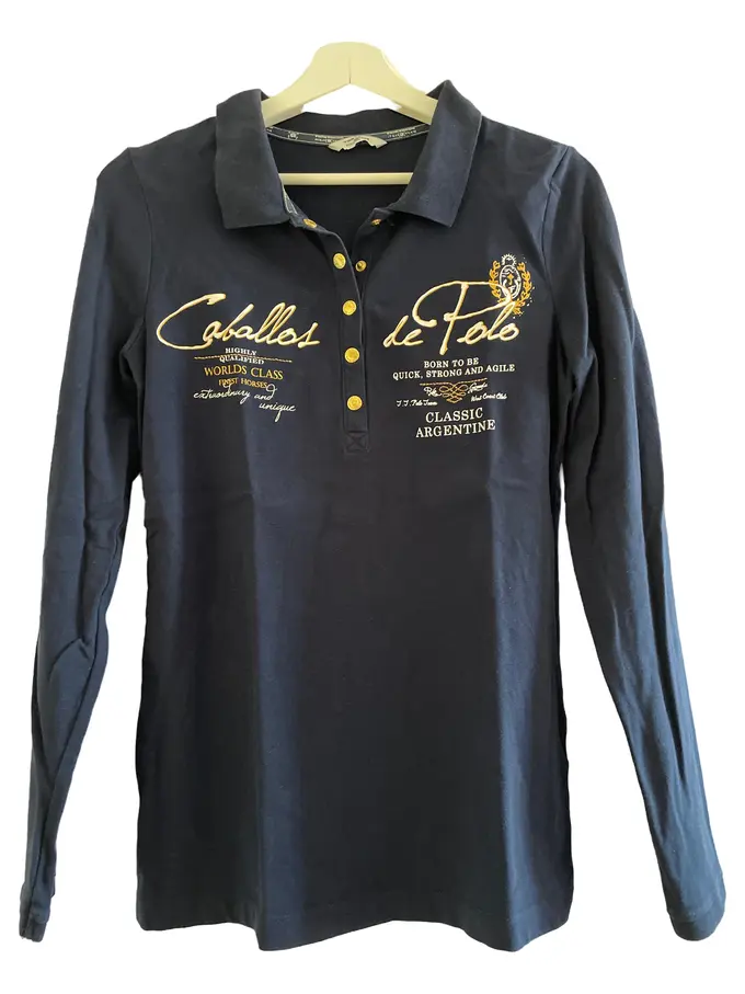 Damen Poloshirt Langarm Gr. 40 Blau Casual