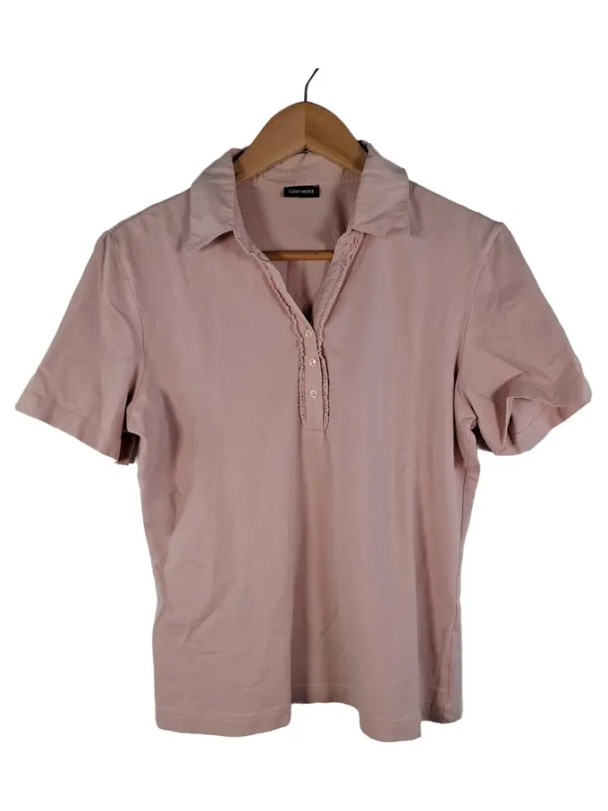 Damen Poloshirt Rosa Baumwolle Kurzarm Gr. 40/L Rüschen
