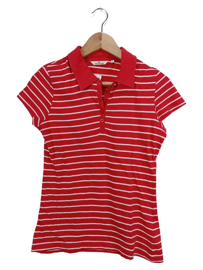 Damen Poloshirt Rot Weiß Gestreift Gr. S 36 Kurzarm