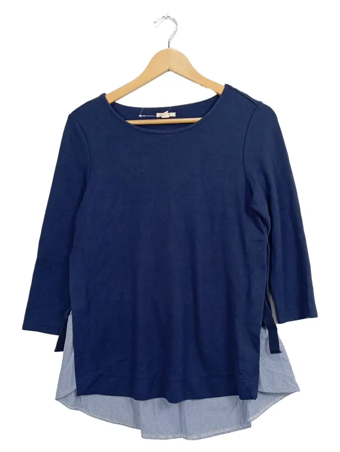 Damen Pullover 3/4 Arm Blau Gr. 36/S Uni Viskose Mix Casual
