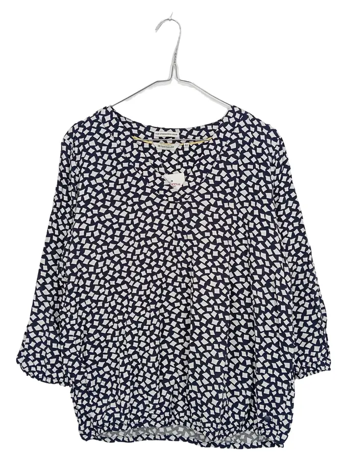 Damen Pullover 3/4 Arm Geometrisch Blau Viskose Gr. 40 L