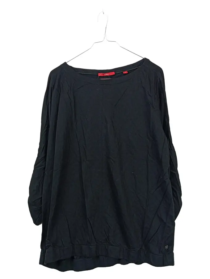 Damen Pullover 3/4 Arm Viskose Raffungen Schwarz Gr. 46