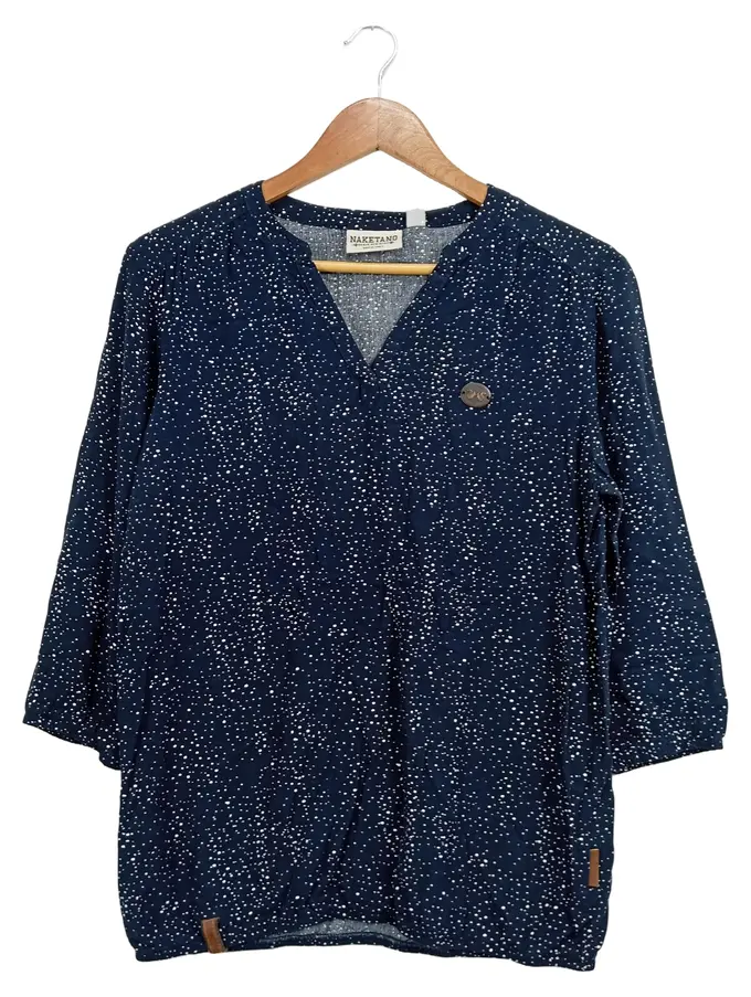 Damen Pullover 36/S Dunkelblau Punkte V-Ausschnitt Casual