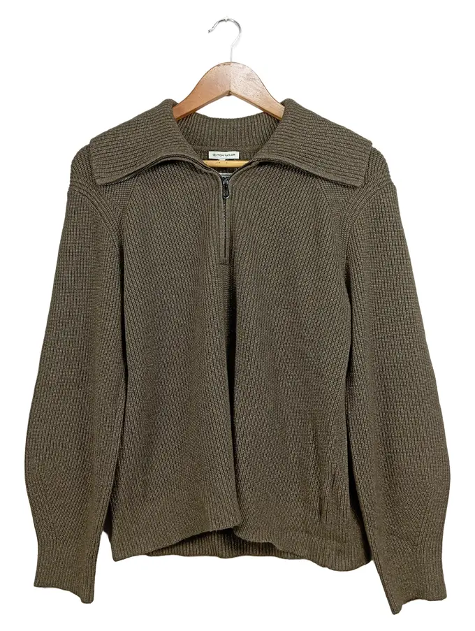 Damen Pullover 36/S Oliv Rippstrick Reißverschluss