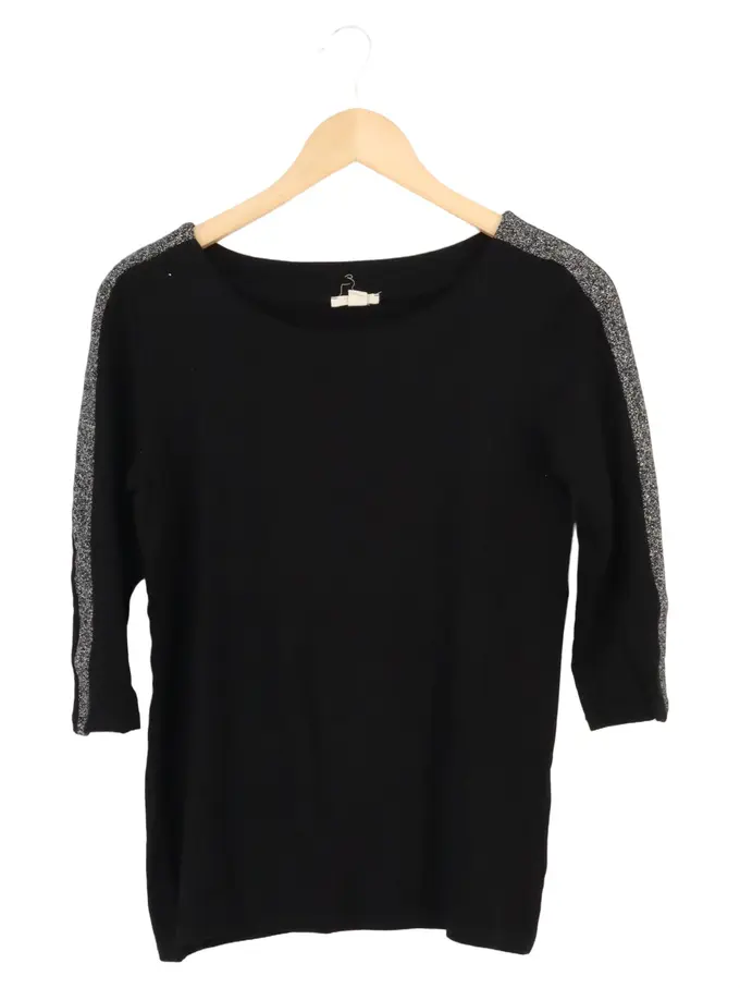Damen Pullover 36/S Schwarz Glitzerstreifen 3/4-Arm