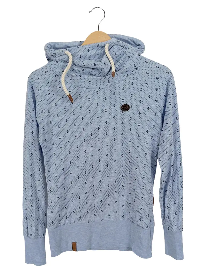 Damen Pullover Anker-Muster Blau Gr. 36/S Maritim Hoodie