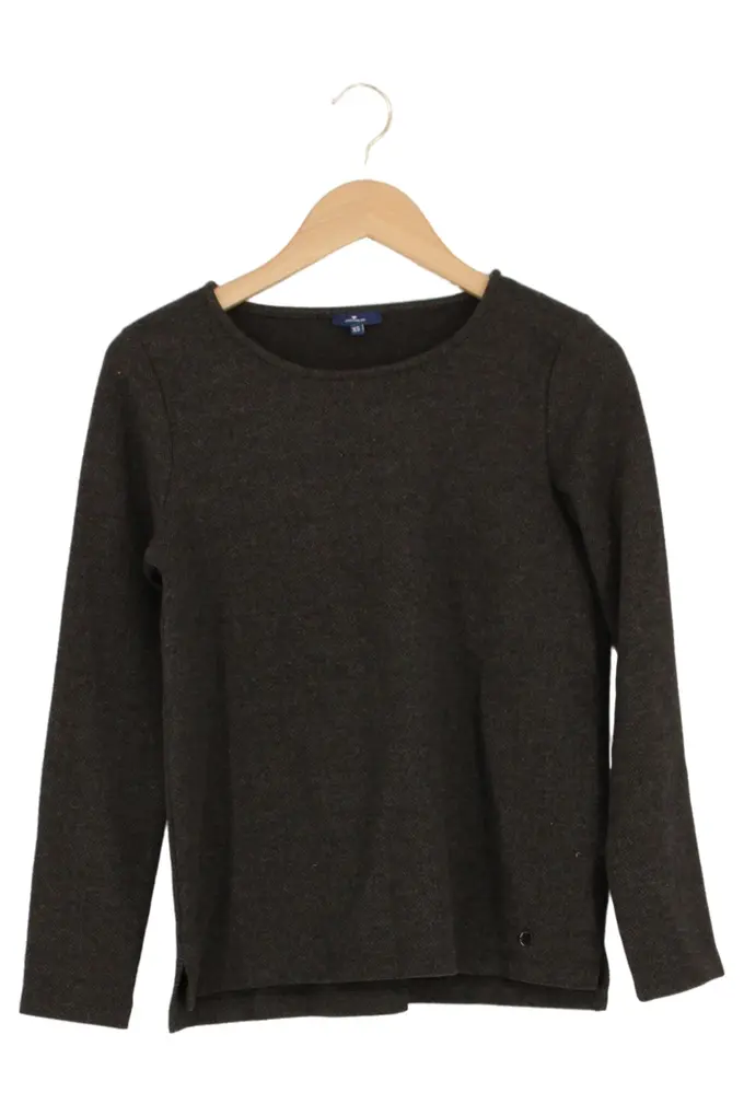 Damen Pullover Basic Grau Meliert Gr. 34/XS Langarm