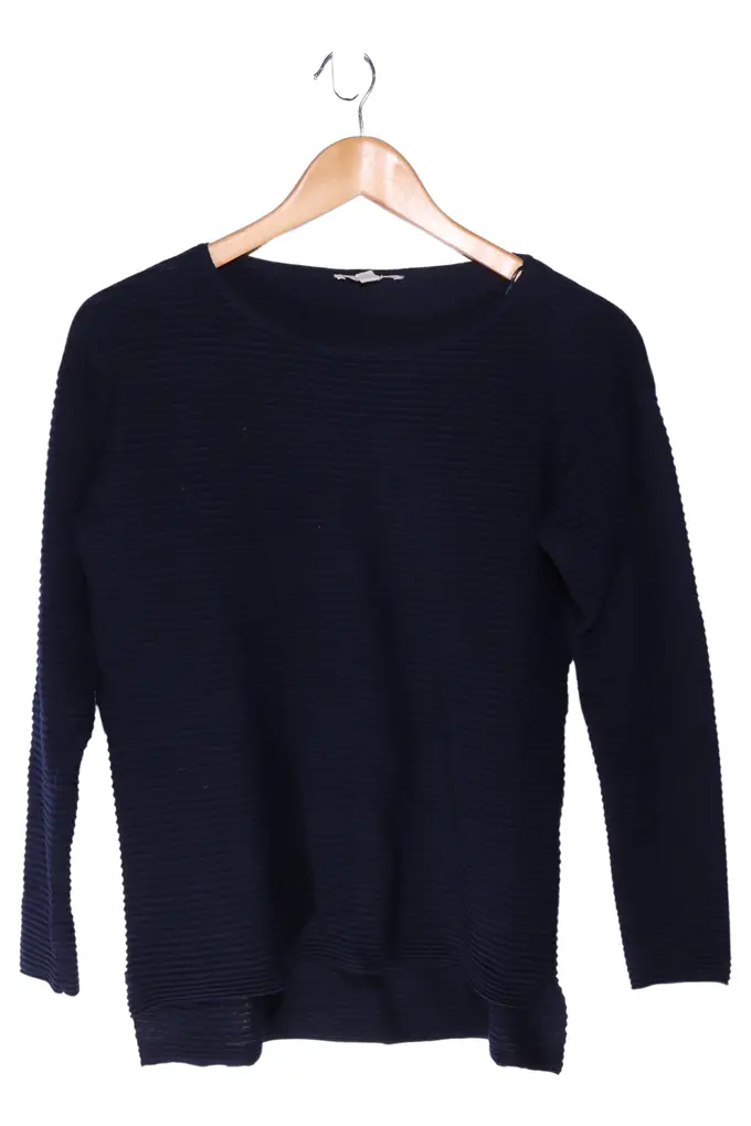 Damen Pullover Blau Gr. 32/XS Casual Preppy Rippstrick Langarm
