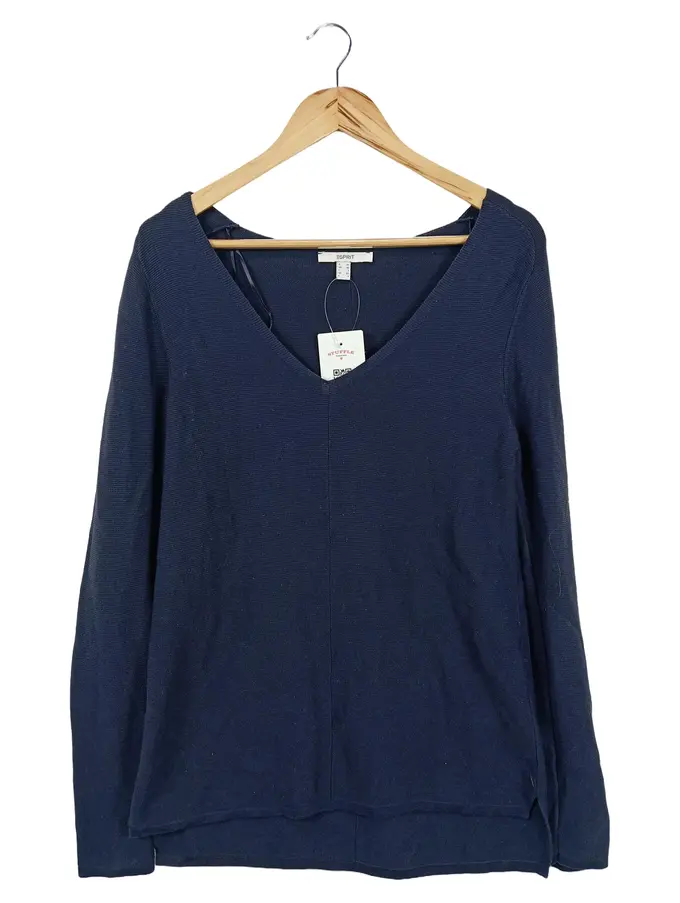 Damen Pullover Blau Gr. 34/XS Casual V-Ausschnitt Baumwolle