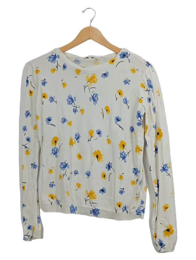 Damen Pullover Blumenmuster Weiß Gelb Blau Gr. S