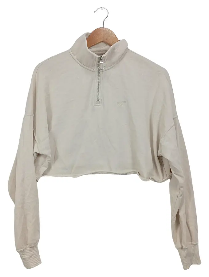 Damen Pullover Cropped Half-Zip Beige Gr. 34/XS Casual