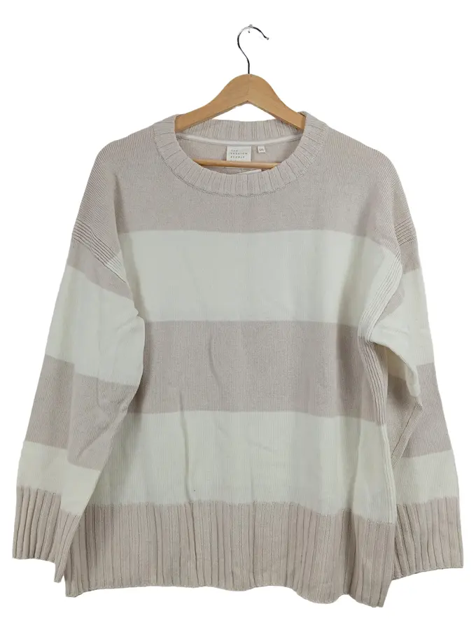 Damen Pullover Gestreift Beige Creme XXL Strick