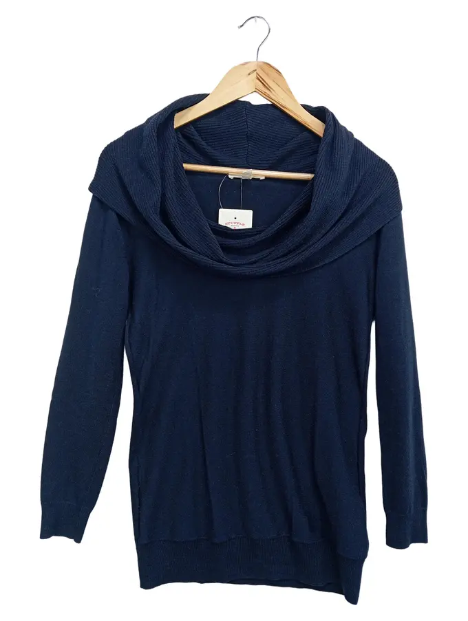 Damen Pullover Gr. 32/XS Blau Klassisch Elegant Rollkragen
